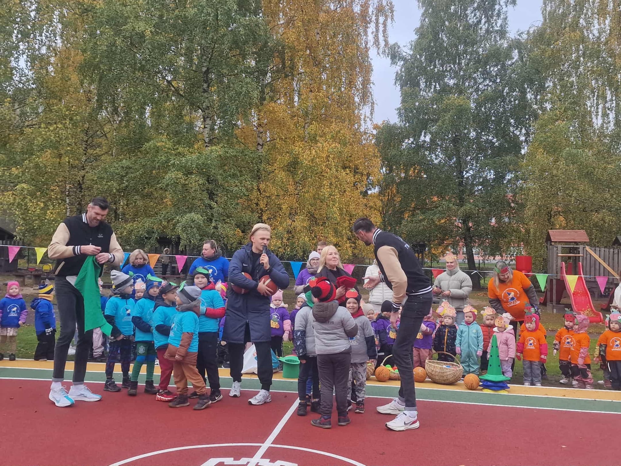 Rudenišką spalio 15-osios rytą Vilniaus lopšelio-darželio „Ozas“ kiemą užliejo džiaugsmas, muzika ir spalvos – vyko naujų sporto aikštelių atidarymas! 🏀⚽
